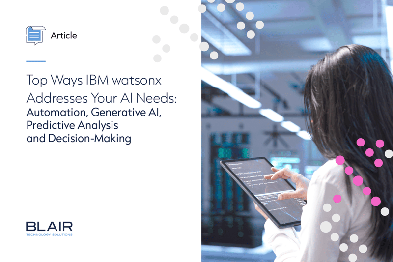 - IBM watsonx, a Trusted Partner: With decades of industry experience, IBM delivers a comprehensive AI platform complemented by the strategic, customized guidance of Blair Technology Solutions.